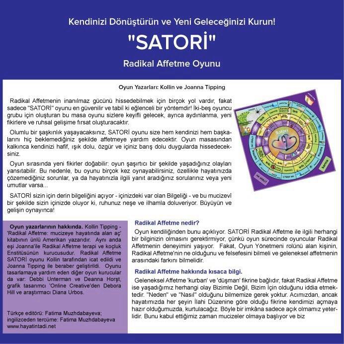 Eğer Şu an hayatınızda kendinizi kaybolmuş, çıkışsız ya da cevaplar arayışında iseniz ya da yeni planların oluşturma noktasında iseniz fakat içinizde tereddütler ve ya korku, şüphe, endişe varsa SATORİ Oyunu oynamayı Sizin için çok yararlı olacaktır!